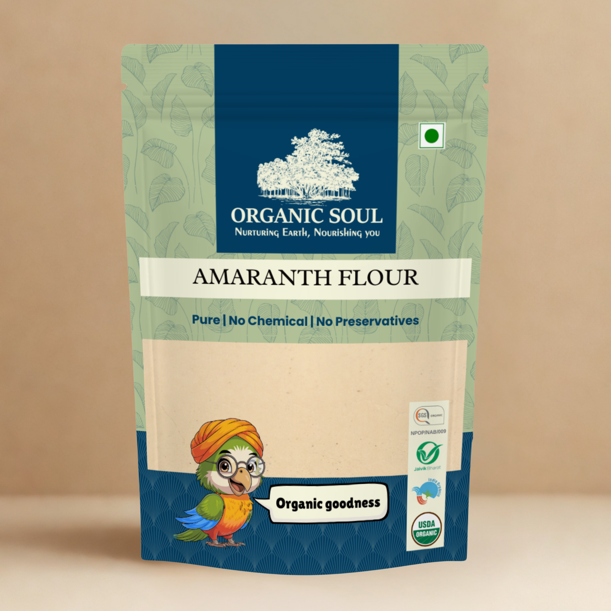 Organic Soul Amaranth Flour is made from ancient, nutrient-dense amaranth grains. Rich in protein, amino acids, calcium, and iron, it is a powerhouse for energy and strength. This naturally gluten-free flour is perfect for chapatis, pancakes, porridges, or blending with other flours to enhance nutrition. Its mild, nutty flavor makes it a wholesome addition to daily meals.
