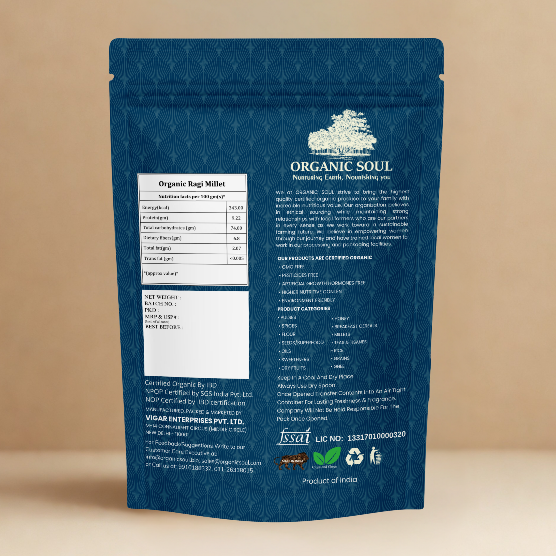 Wholesome, mineral-rich, and naturally gluten-free, Organic Soul’s Ragi Whole brings the goodness of ancient grains to your kitchen—pure, nourishing, and crafted with care from farm to table.