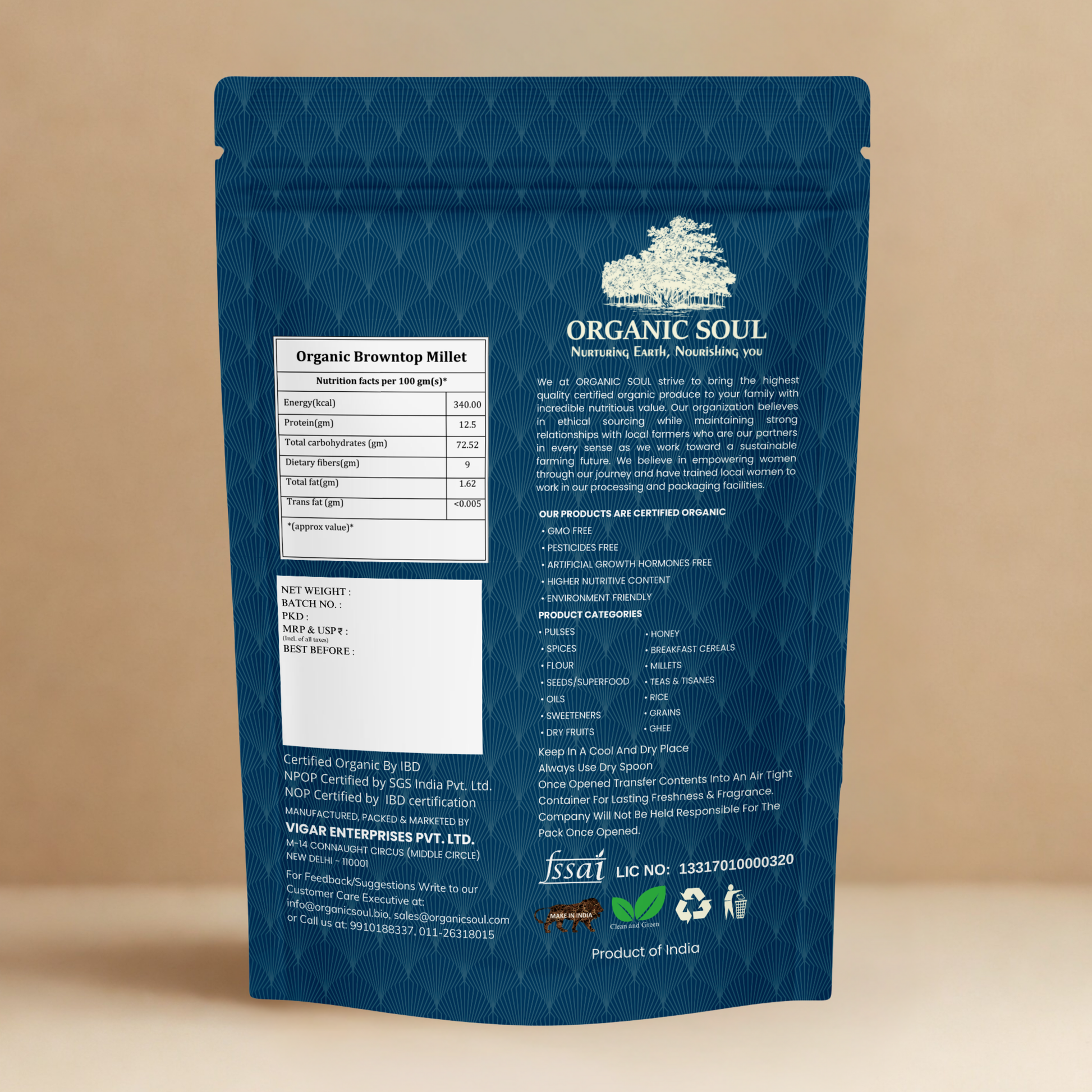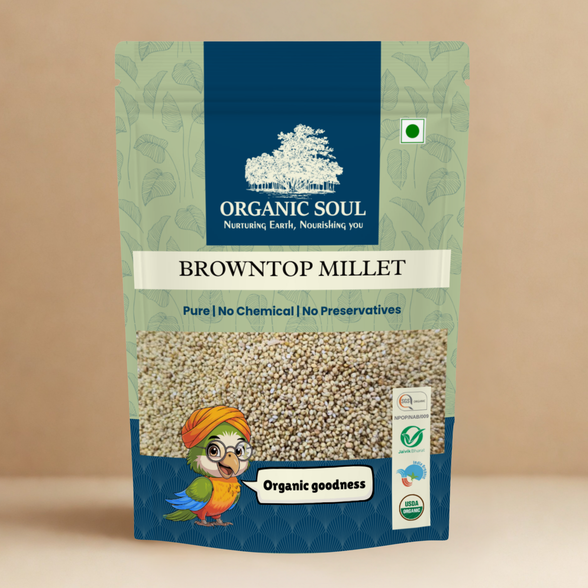 Organic Soul Browntop Millet comes in a 900gm pack, hygienically sealed to preserve freshness and quality. A simple, nutrient-packed millet that adapts beautifully into everyday cooking, Browntop Millet brings both health and taste to your plate.