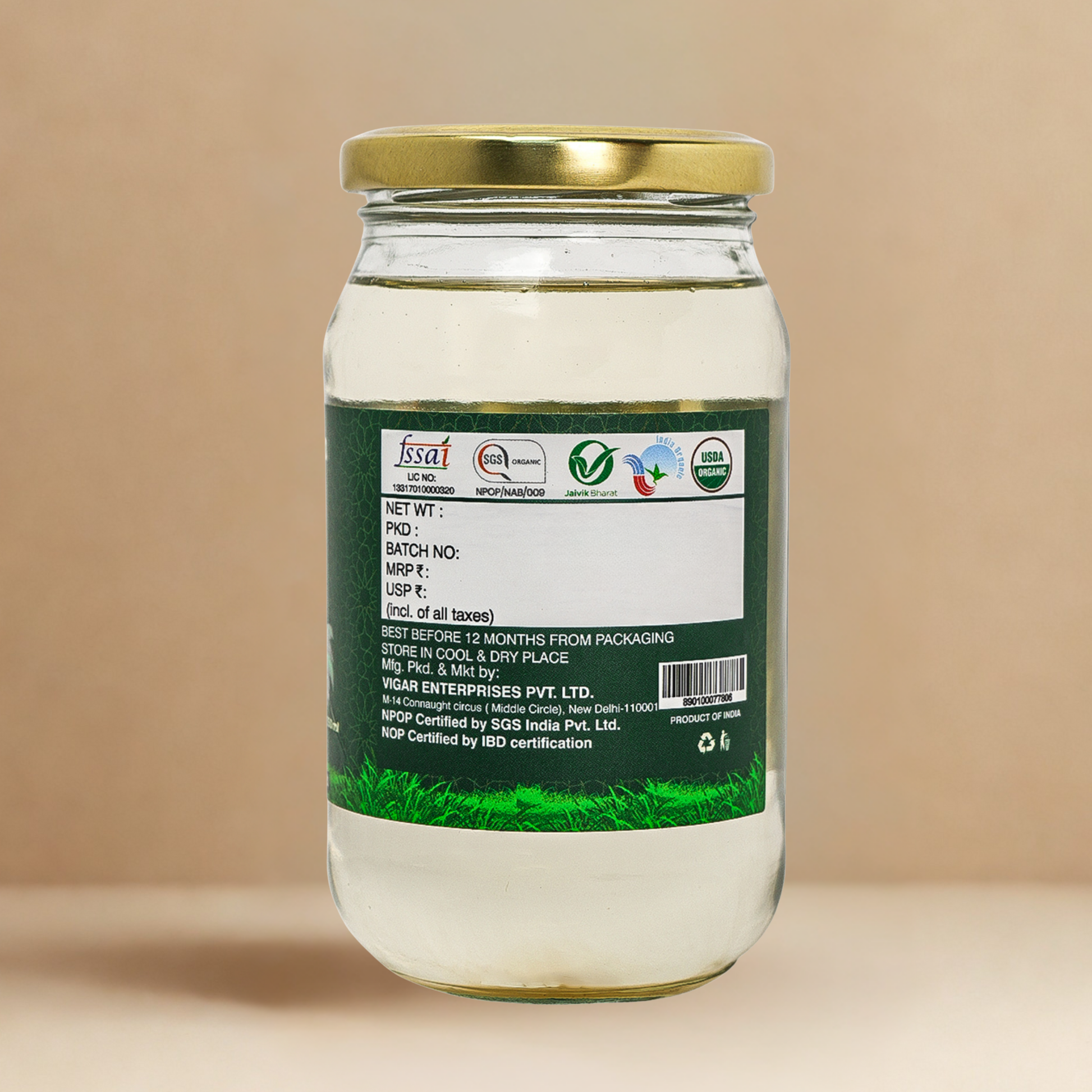 Rich in healthy fats, lauric acid, and Vitamin E, it supports heart health, boosts metabolism, and strengthens immunity. Its light texture makes it perfect for cooking, baking, and traditional oil pulling, while its natural moisturizing properties make it a daily essential for skin, hair, and baby massage.