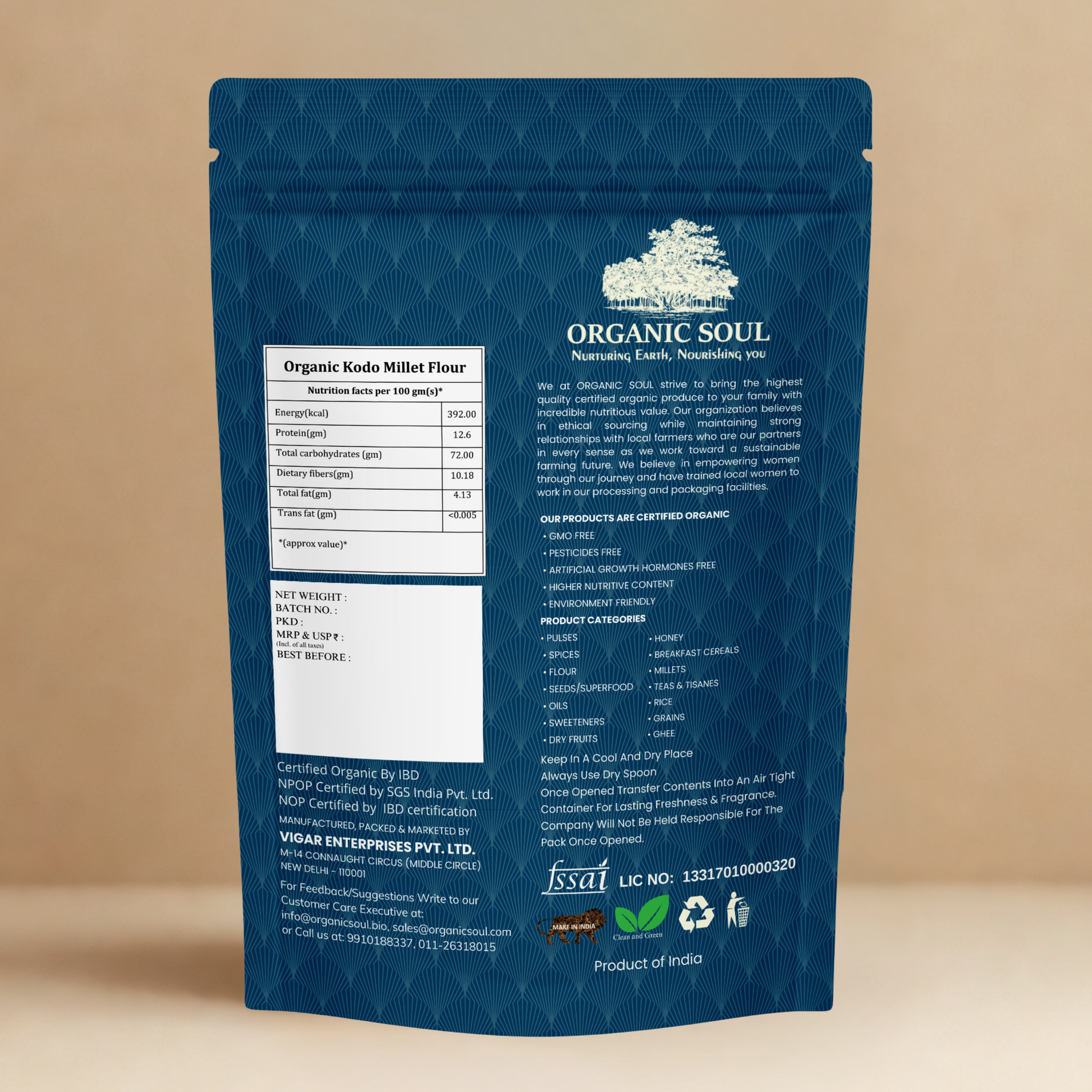 Organic Soul Kodo Millet Flour – 900gm | 100% Certified Organic | Unpolished | Non-GMO