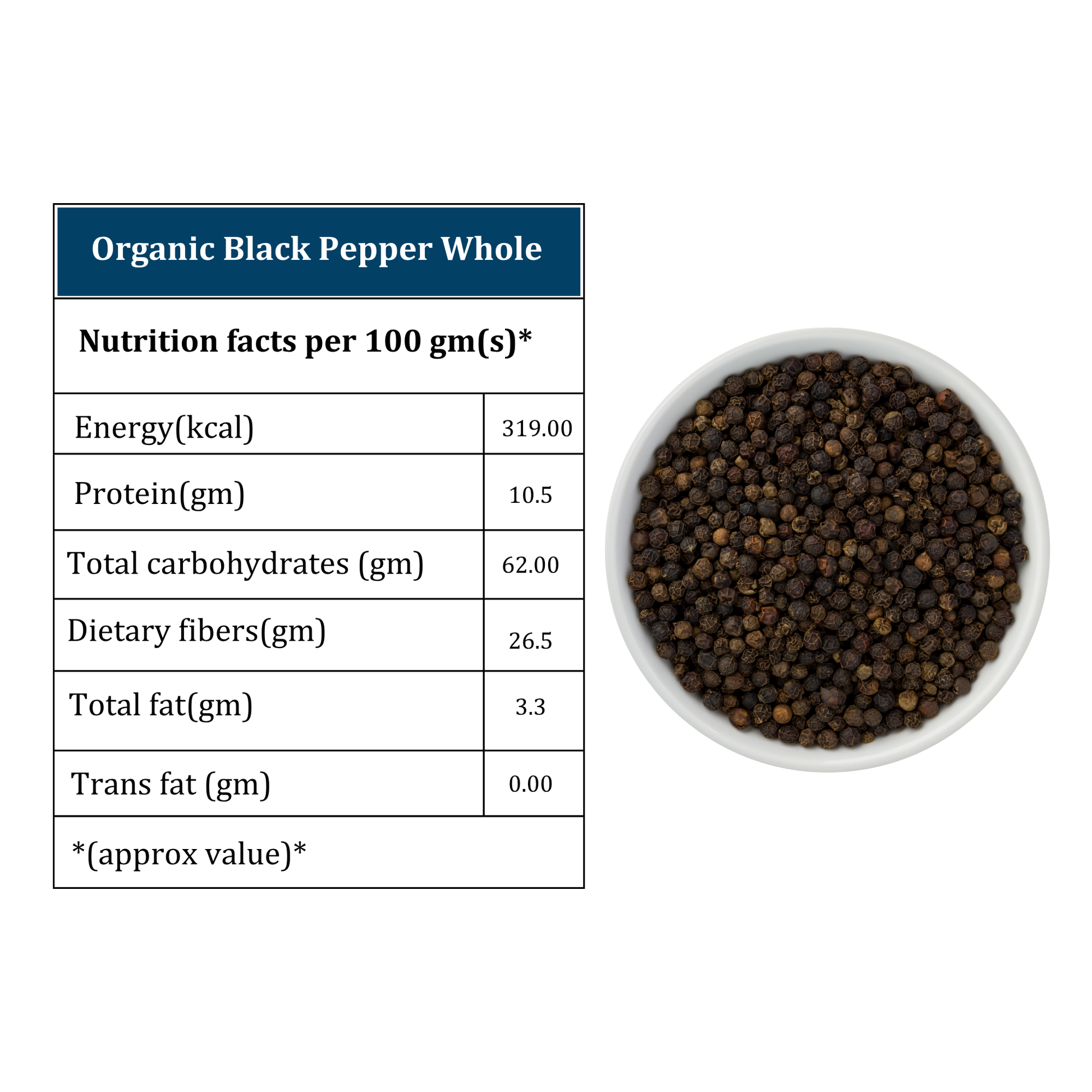 Organic Soul Black Pepper Whole – 100gm | 100% Certified Organic | Non-GMO