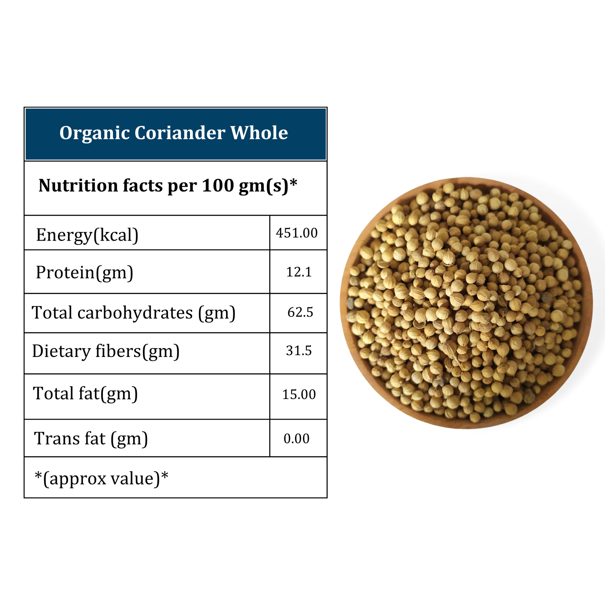 Organic Soul Coriander Whole is harvested from certified organic farms and carefully dried to preserve its freshness and aroma. Known for its light citrusy flavor with earthy undertones, coriander seeds are widely used across Indian and global cuisines.